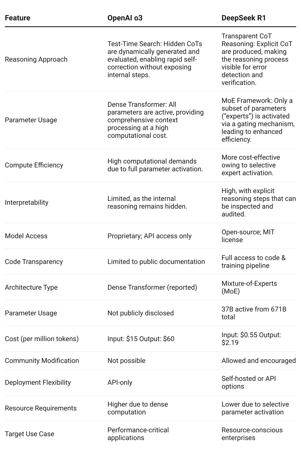 Table showing the computational cost of both the models | Source: OpenAI o3-mini vs. DeepSeek R1: Which one to choose?