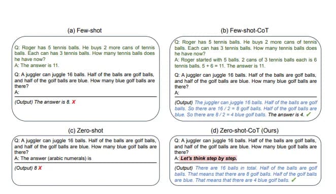 Comparison of Few-shot-CoT and Zero-shot-CoT | Source: Large language models are zero-shot reasoners