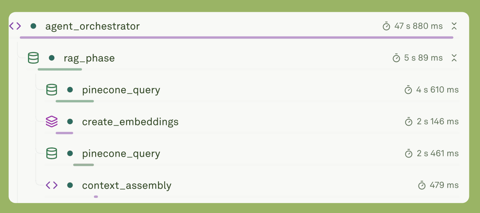 This plan determines which phases run. Simple queries skip the RAG phase entirely.