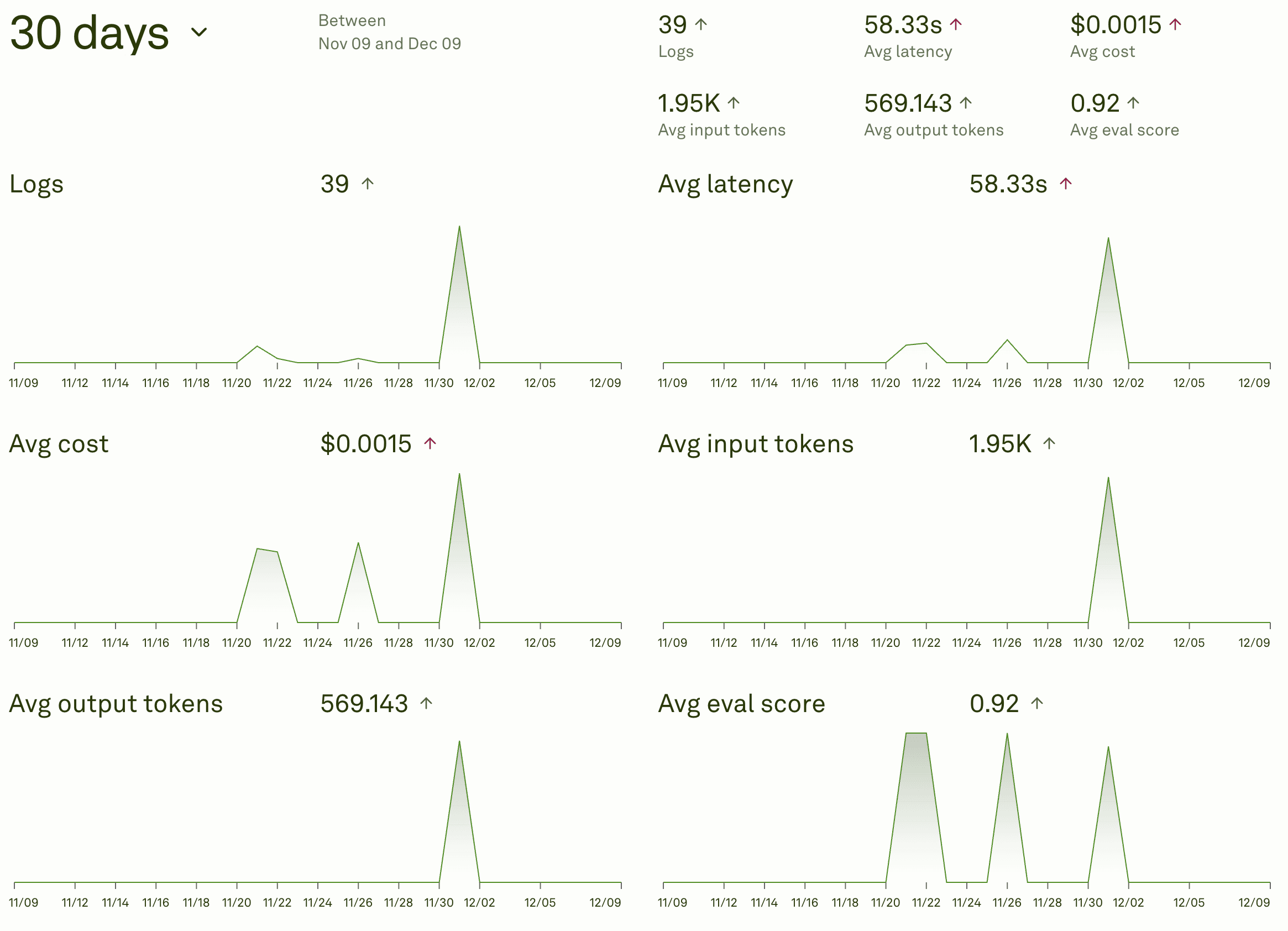Adaline's dashboard allows you to monitor important metrics in real-time.