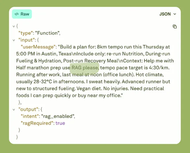 If the user message contains the phrase "RAG," then the RAG is enabled. This is known as intent classification.