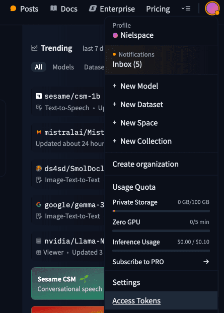 - Login to the Huggingface platform.
