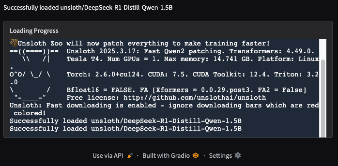 - gradio_log: Displays real-time logs during model loading and operation