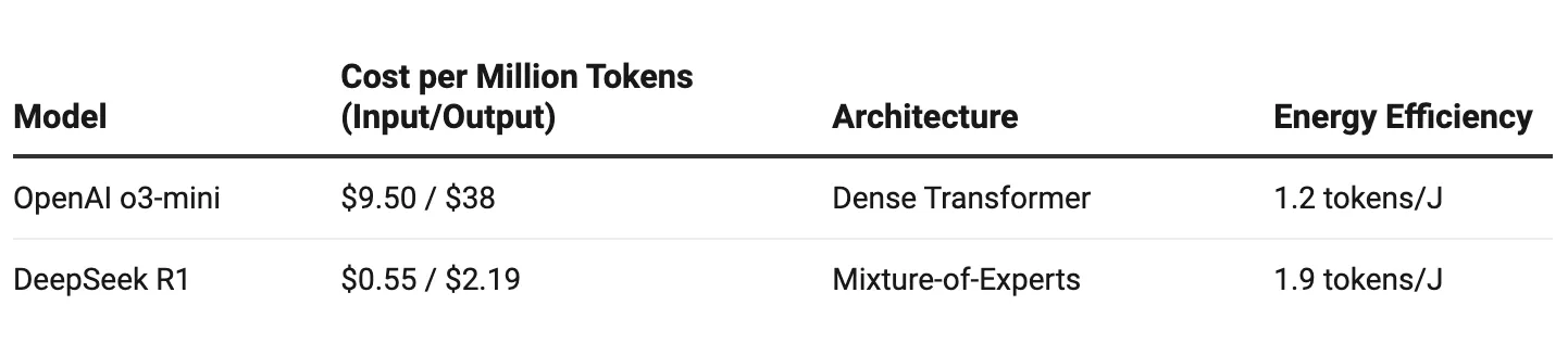Table showing the computational cost of both the models | Source: OpenAI o3-mini vs. DeepSeek R1: Which one to choose?
