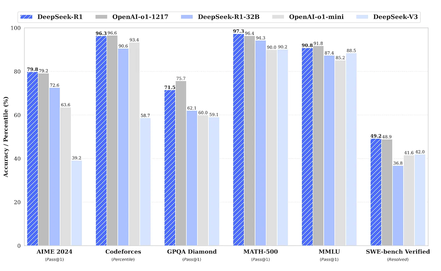 - Safety vs performance: R1’s safety RL training reduced Chinese SimpleQA accuracy by 12%, showing alignment challenges.