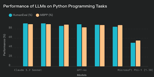 Recent benchmark results show varying performance across models. Claude 3.5 Sonnet leads with 92% on HumanEval, followed by GPT-4o at 90.2% and Llama 3.1 at 89%.