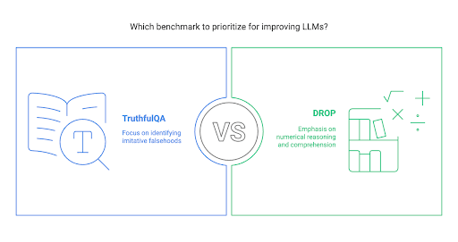 Together, these benchmarks expose common error patterns in LLMs. Models often struggle with numerical reasoning in DROP and can mirror human misconceptions in TruthfulQA. The trade-off between factual recall and reasoning capability becomes evident. Some models excel at retrieving facts but stumble when required to perform operations on that information.