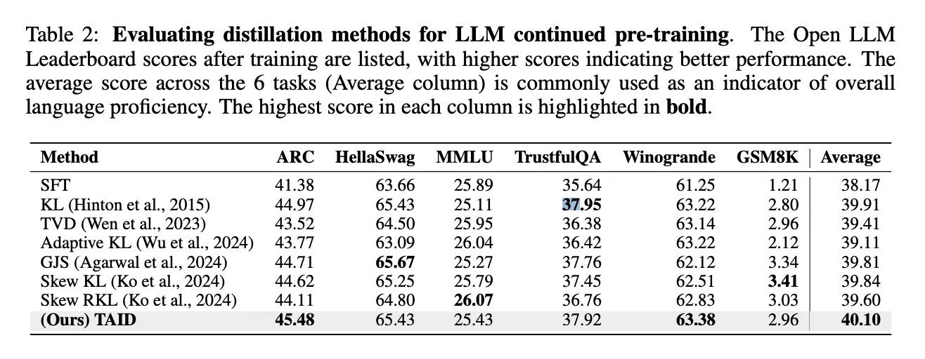 - Task-aware intermediate distillation (TAID) prevents mode collapse through adaptive interpolation