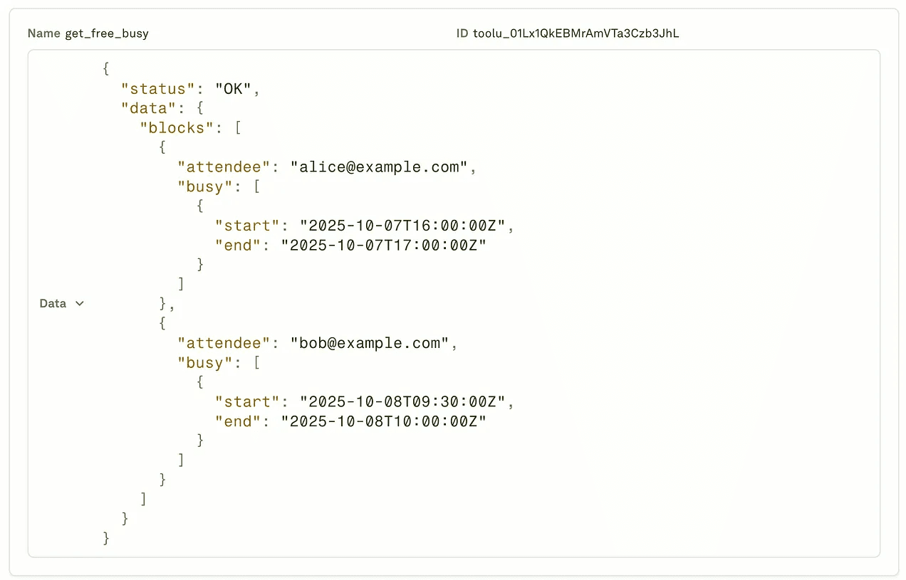 - Execution. The model emits structured JSON with function and arguments; the app executes and returns results.