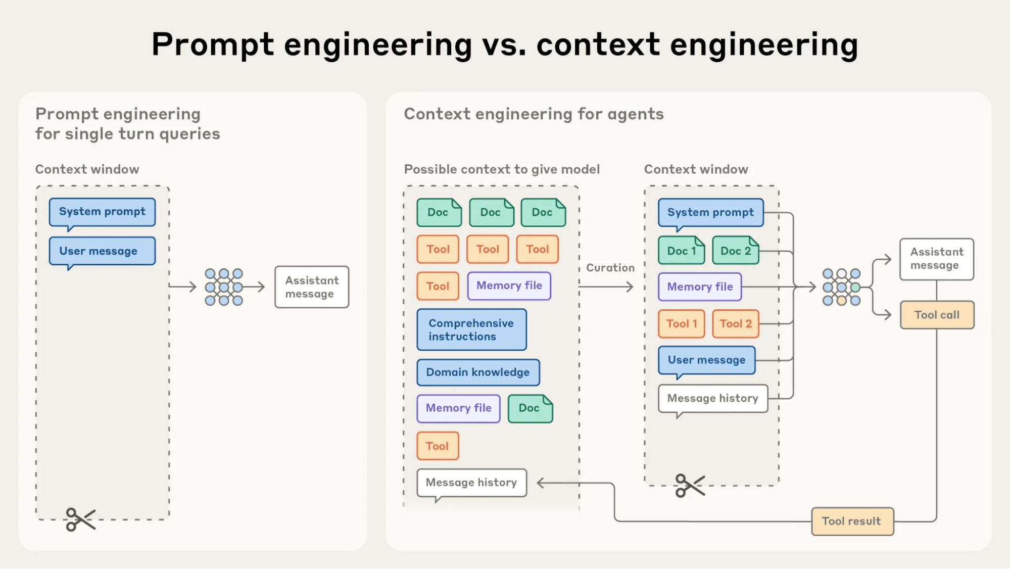 Difference between prompt engineering and context engineering. | Source: Effective context engineering for AI agents