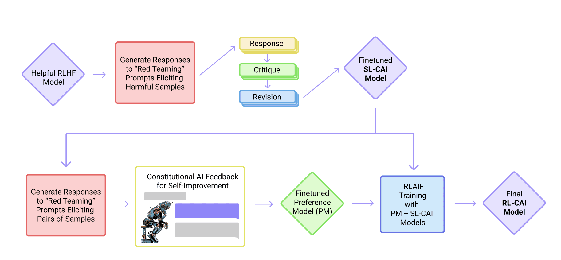 Workflow of Anthropic’s constitutional AI | Source: Constitutional AI: Harmlessness from AI Feedback