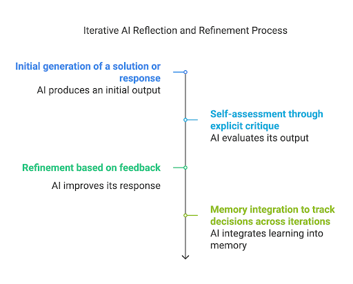 AI reflection relies on recursive feedback mechanisms that allow models to revisit their outputs. This process enables language models to evaluate reasoning, identify inconsistencies, and refine future outputs. The model creates an internal loop to assess its reasoning before delivering a final response.